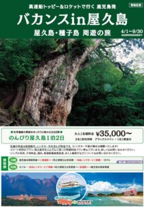 2026年4月1日~9月30日泊まで 毎日出発【高速船で行く鹿児島発バカンスin種子島・種子島&屋久島周遊の旅】好評販売中!